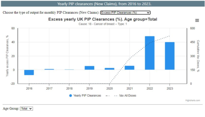 And what about this? Excess death rates from breast cancer in the UK were 5% in 2020, then rose to 12% in 2021, and 28% in 2022.